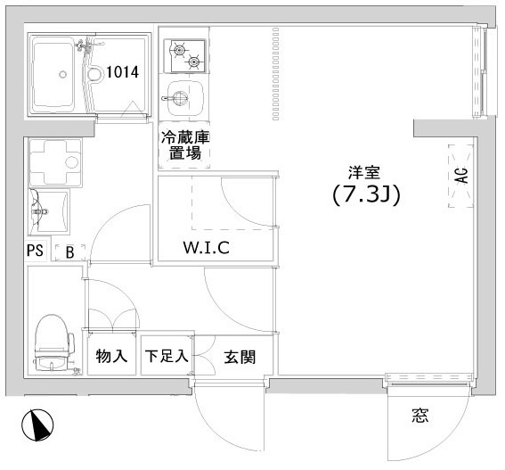 26.6㎡の1R。洋室は7.3帖もありウォークインクローゼットも完備されています。