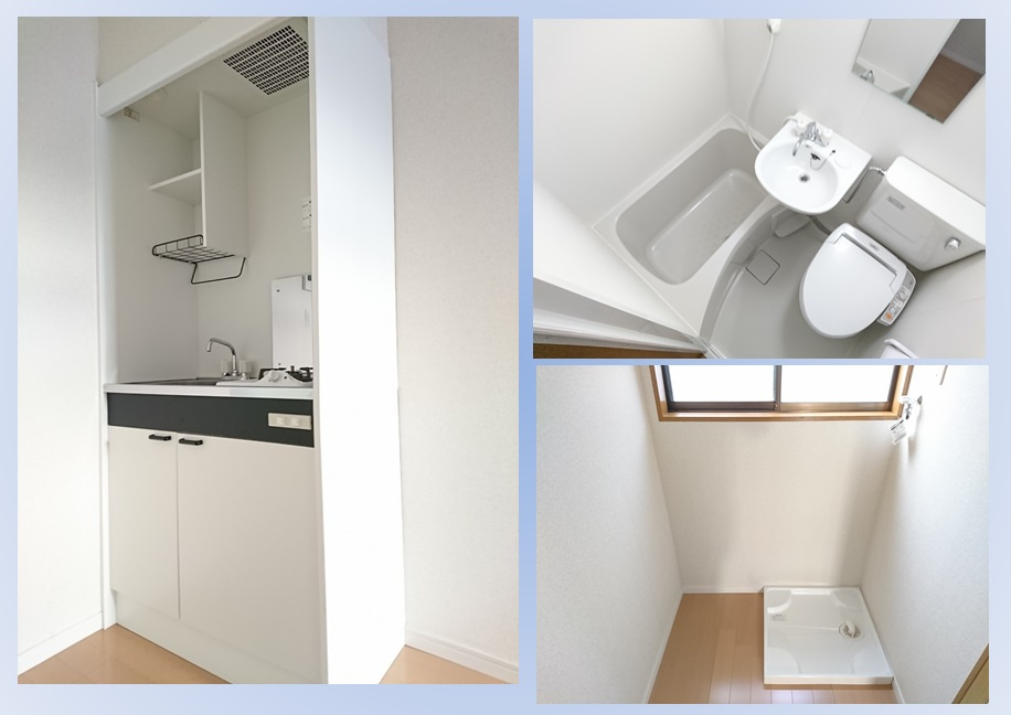 見てください!!3点ユニットバスですが、ウォシュレットが付いています!!室内洗濯機置き場も完備です。