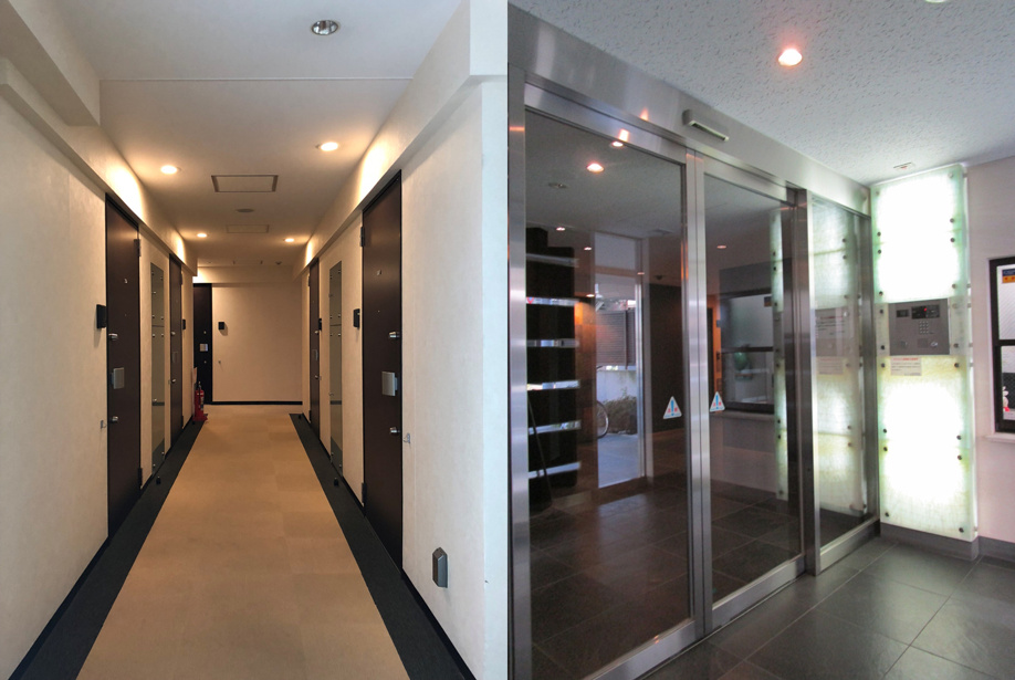 共用廊下は内廊下設計でTVモニター付きオートロックが設置されているので一人暮らしの女性でも安心して生活できますね!