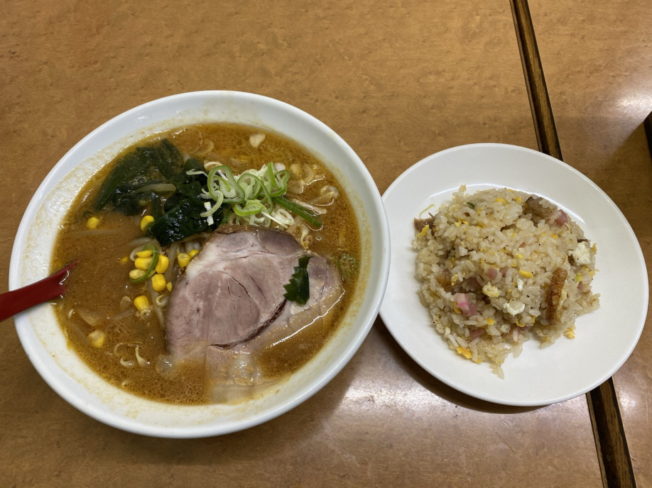 しかし、お店の看板に味噌ラーメンと書いてあったので、看板メニューと思われる味噌ラーメンと半炒飯セットを注文しました。