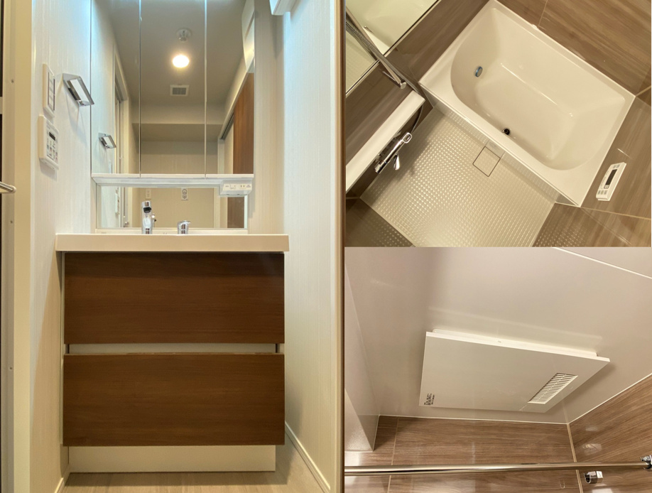 各お部屋に追い炊き機能付きバス、浴室乾燥機、洗髪洗面化粧台など十分な設備が揃っています。