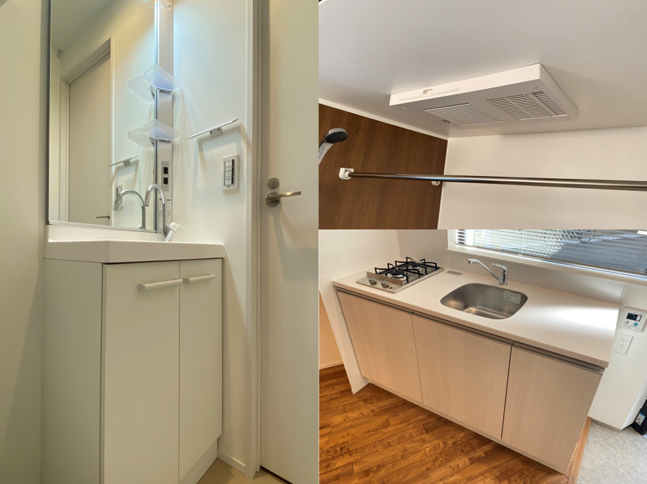 お部屋の中は、独立洗面台、浴室乾燥機、ガスコンロ2口以上など設備も充実!