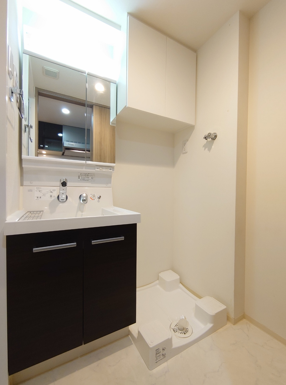 シャンプードレッサーに640×640の防水パンが付いているのでドラム式洗濯機も問題なく入ります。