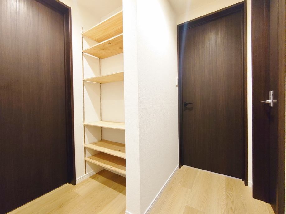 洗面台の横に収納棚も設置できるスペースもあるのが嬉しいですね。