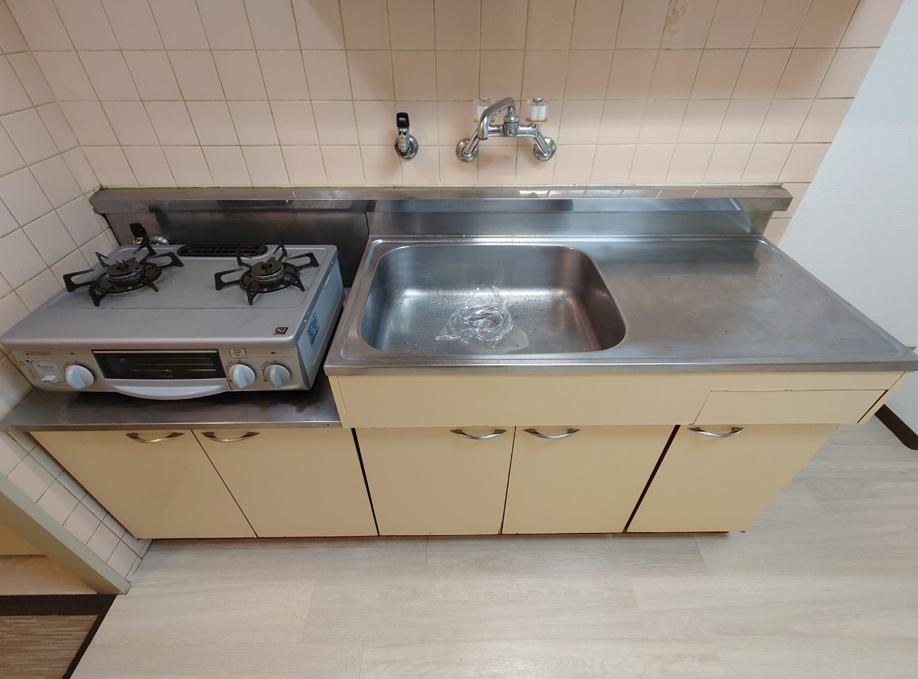 キッチンには調理スペースとガスコンロ2口が欲しい方!!この物件は広々と使えます。