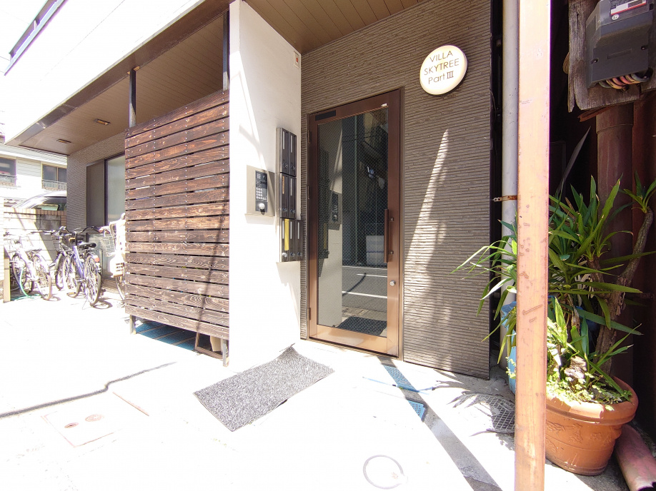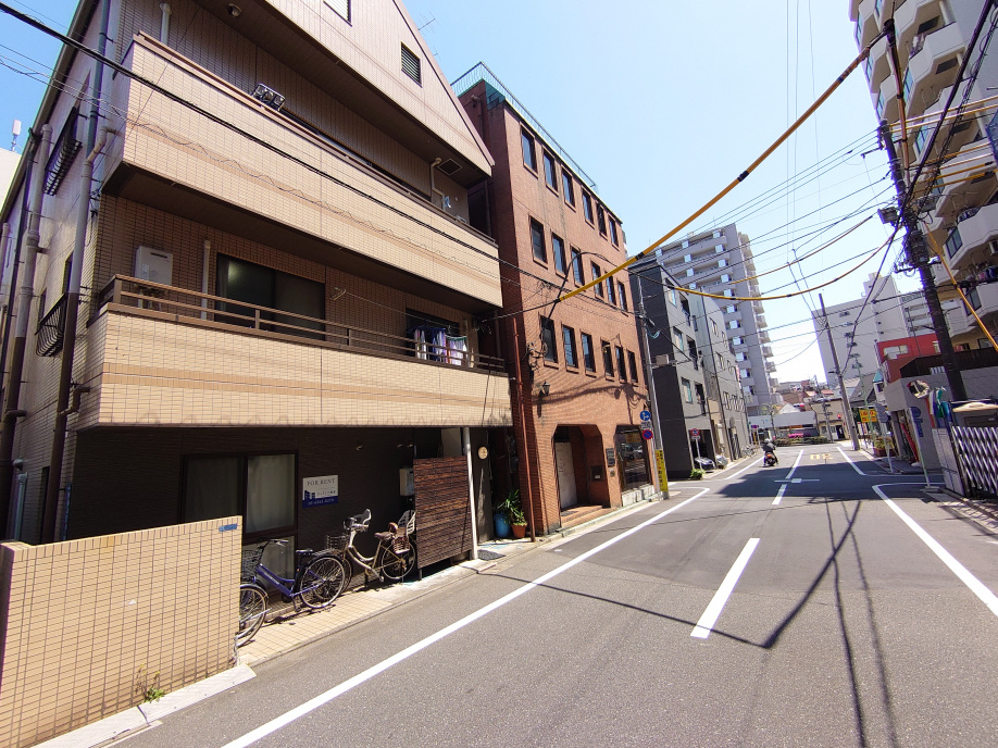 弊社募集看板が目印です!!共用部は内廊下設計のTVモニター付きオートロックが付いています。