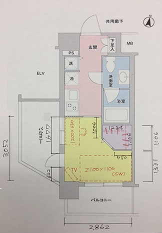 ウォークインクロゼットがある人気のお部屋なのですが、ベッドやデスクはうまく配置できるかな??事前に寸法を測っているのでご安心ください!!