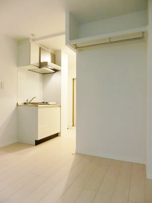 収納は上段にハンガーパイプ付き!!スタイリッシュなキッチンも魅力的です(^^)/