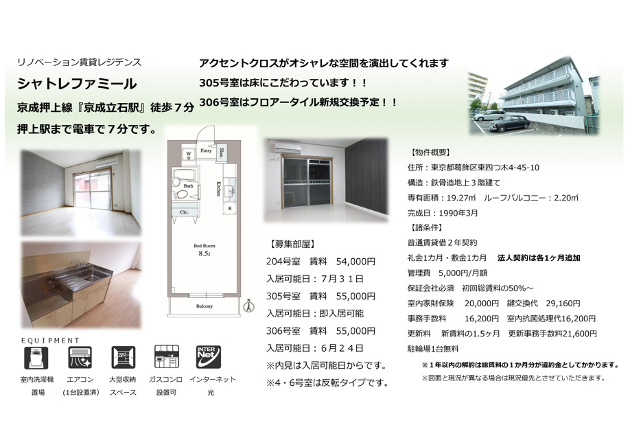 本日は弊社管理物件の京成立石にあるマンション【シャトレファミール】をご紹介したいと思います!!